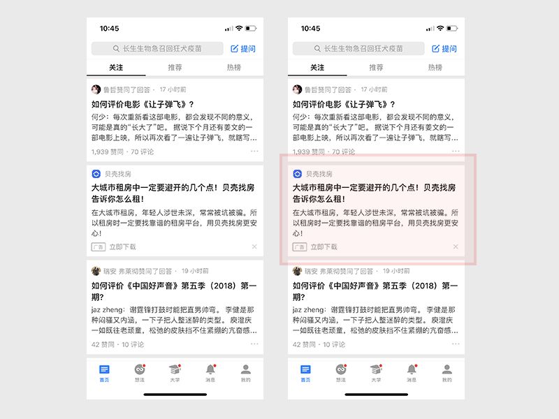 知乎APP中信息流中的廣告