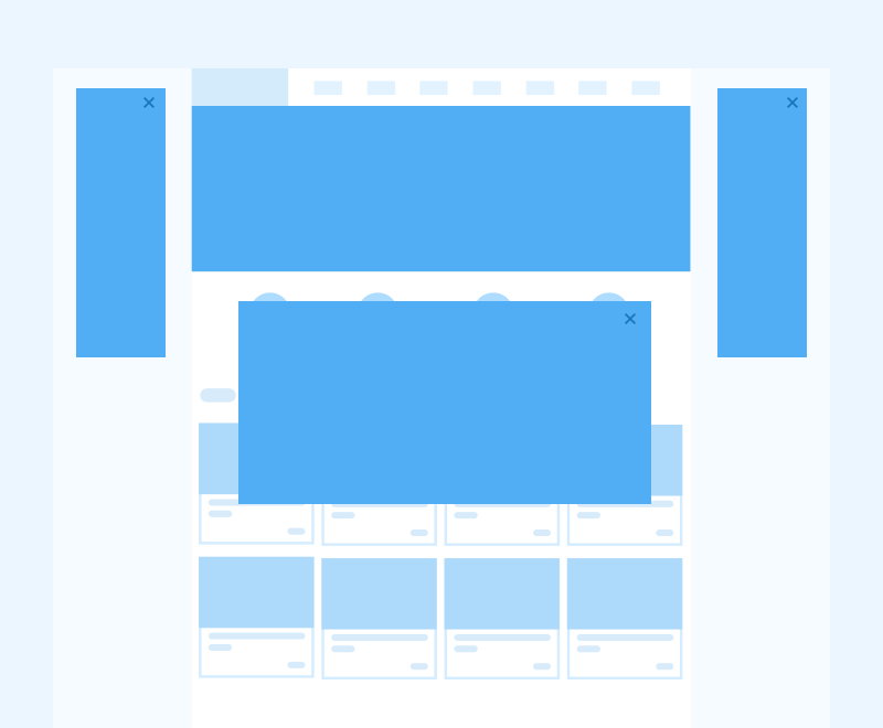 對聯廣告。在門戶網站中我們經常會看到網站左右安全區域之外會有連個隨屏幕滾動的像對聯一樣的廣告,通常banner也會是一個廣告內容,并且居中會彈出由HTML5技術或Flash技術制作出來的彈窗廣告。這種廣告一般組合售賣,也就是說一進網站你就會被全面轟炸,無法不注意到這個廣告的存在。這種廣告點擊進入還有配合的專題頁等,可見需要設計師配合的地方非常多。